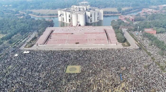 জানাজার নামাজ অনুষ্ঠিত হওয়ার কথা ছিল ঢাকার বুকে, হয়তো জাতীয় ঈদগাহ ময়দানে অথবা অন্য কোনো বিশাল খোলা জায়গায়। কিন্তু সেই নির্ধারিত স্থান ছাড়িয়ে জনসমাগম ছড়িয়ে পড়েছিল কয়েক কিলোমিটার জুড়ে। শাহবাগ, পল্টন, গুলিস্তান, মতিঝিল থেকে শুরু করে আশেপাশের প্রতিটি সড়ক, ফুটপাত, এমনকি বহুতল ভবনের ছাদেও ছিল মানুষের ভিড়। এটি কেবল একটি রাজনৈতিক দলের নেতাকর্মীদের সমাবেশ ছিল না, ছিল সাধারণ জনগণের স্বতঃস্ফূর্ত অংশগ্রহণ। কৃষক, শ্রমিক, ছাত্র, শিক্ষক, বুদ্ধিজীবী – সমাজের প্রতিটি স্তরের মানুষ সেদিন শামিল হয়েছিল এই শোকমিছিলে। তাঁদের চোখে ছিল অশ্রু, মুখে ছিল নিঃশব্দ প্রার্থনা।