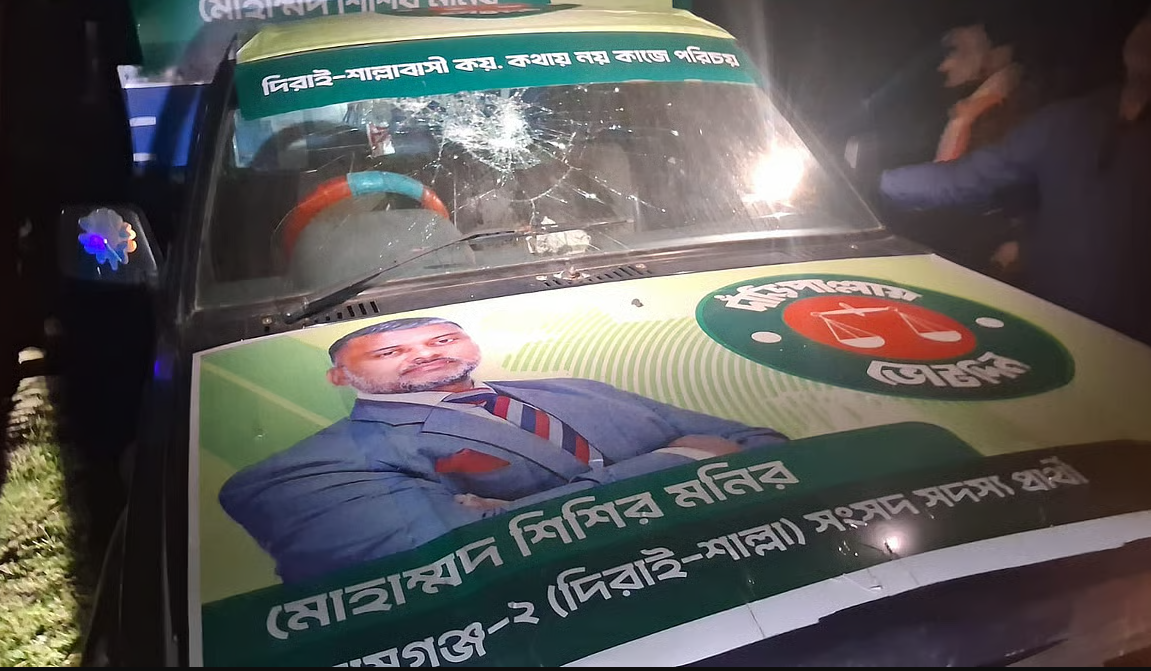 আসন্ন জাতীয় সংসদ নির্বাচনকে কেন্দ্র করে রাজনৈতিক অঙ্গনে উত্তাপ ক্রমেই বাড়ছে। এরই মধ্যে সুনামগঞ্জ-২ আসনে (দিরাই ও শাল্লা) ঘটে গেল এক অনাকাঙ্ক্ষিত ও উদ্বেগজনক ঘটনা। জামায়াতে ইসলামীর প্রার্থী মোহাম্মদ শিশির মনিরের নির্বাচনী প্রচার গাড়িতে হামলা ও ভাঙচুরের ঘটনা ঘটেছে, এতে আহত হয়েছেন দুজন। এই ঘটনা নির্বাচনপূর্ব পরিস্থিতিতে নতুন করে উত্তেজনা সৃষ্টি করেছে।